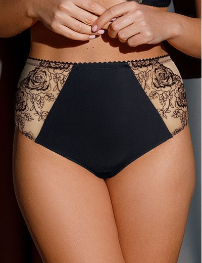 Высокие трусы-бразилиана Fluide ГАРМОНИЯ модель 2057 — это ваша тайная уверенность в успехе. Чёрная микрофибра с блеском подчёркивает силуэт, а телесная сетка с вышивкой по бокам добавляет лёгкость. Высокая талия и двойная сетка на спинке гарантируют комфорт под любой одеждой. Стильно, удобно и всегда к месту.