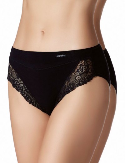 Набор Janira 1031645 Pack-2 черного цвета — это комплект из двух классических трусиков-слипов Milano из базовой коллекции ESENCIAL. Одна из самых популярных моделей бренда для для комфорта женщин размеров 2XL и 3XL, сочетает гигиеничность высококачественного хлопка и женственный кружевной декор.