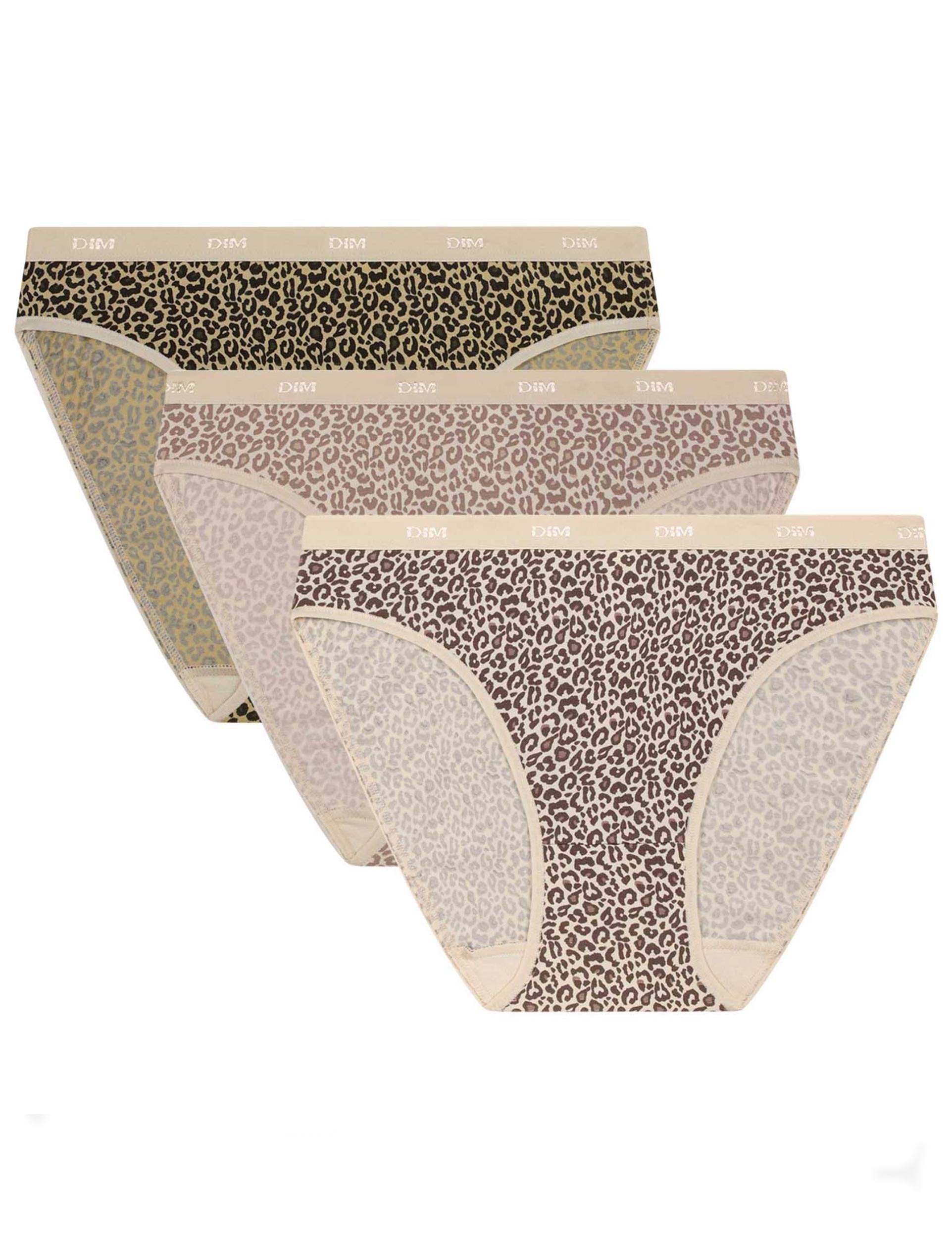 Набор хлопковых трусиков Dim LES POCKETS COTON 4C17 кошачий шик - 3 штуки