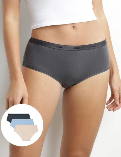 Набор хлопковых трусов Dim LES POCKETS COTON 4H01/3 бежевый/голубой/серый - 3 штуки