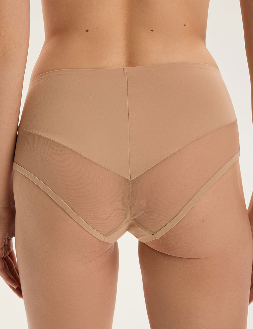 Трусы высокие Esotiq CLEARY, модель 44271 кофейного оттенка — совершенство повседневной элегантности: незаметные под одеждой, они дарят мягкость и нежное прикосновение мягкой микрофибры. Сочетают комфорт, отличную посадку и легкую коррекцию силуэта. Передняя часть сглаживает линию живота и подчеривает талию. Прозрачные сетчатые вставки сзади вносят в образ лёгкость и воздушную грацию.