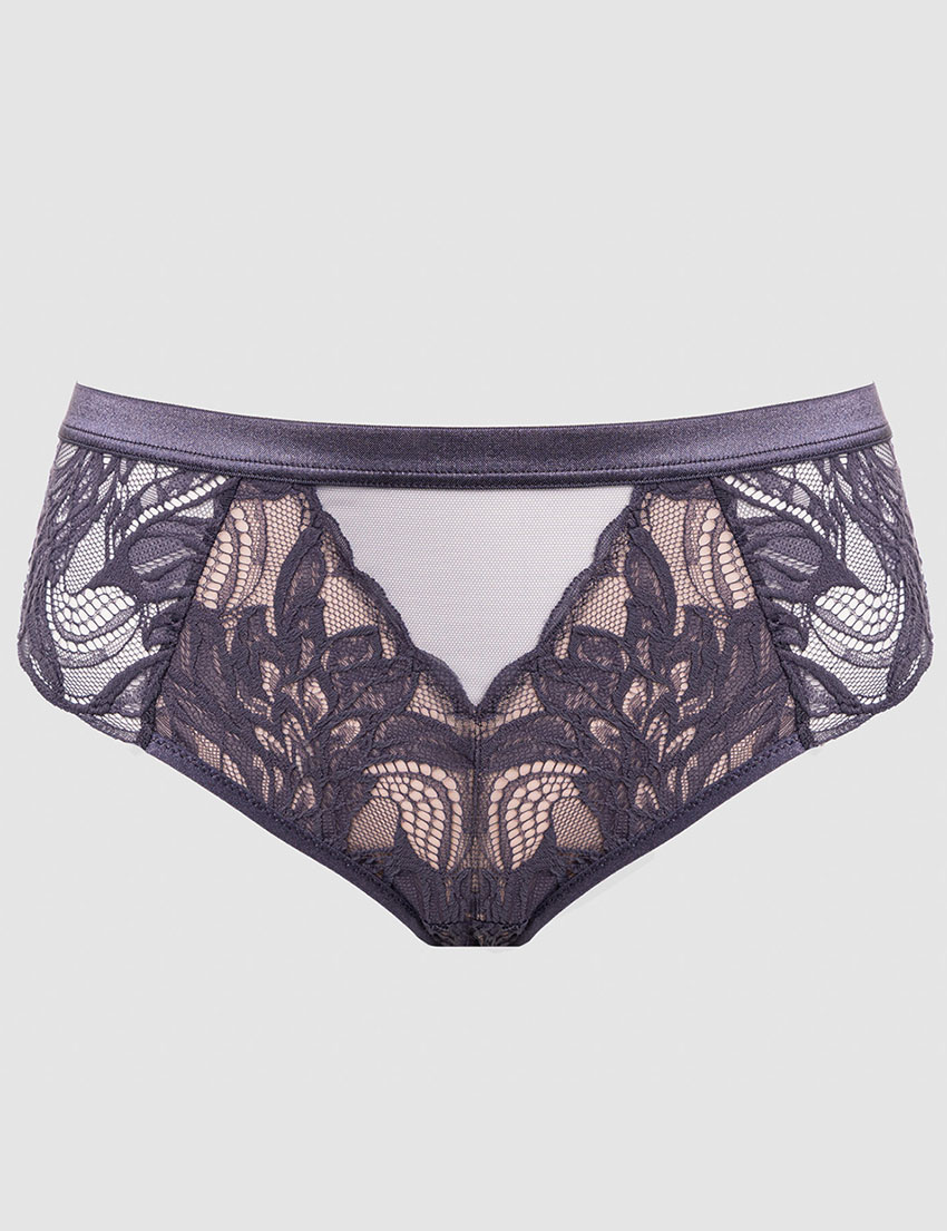 Трусики слипы Alles LUCE VIOLA — классика женского комфорта с современным шармом. Вставка из сетки в тон выразительному объемному кружеву добавляет легкость. Графитовый оттенок с фиолетовым акцентом напоминает спокойный туман над озером, создавая ощущение утреннего покоя. Подходят для любого дня, сочетая уют и элегантность.