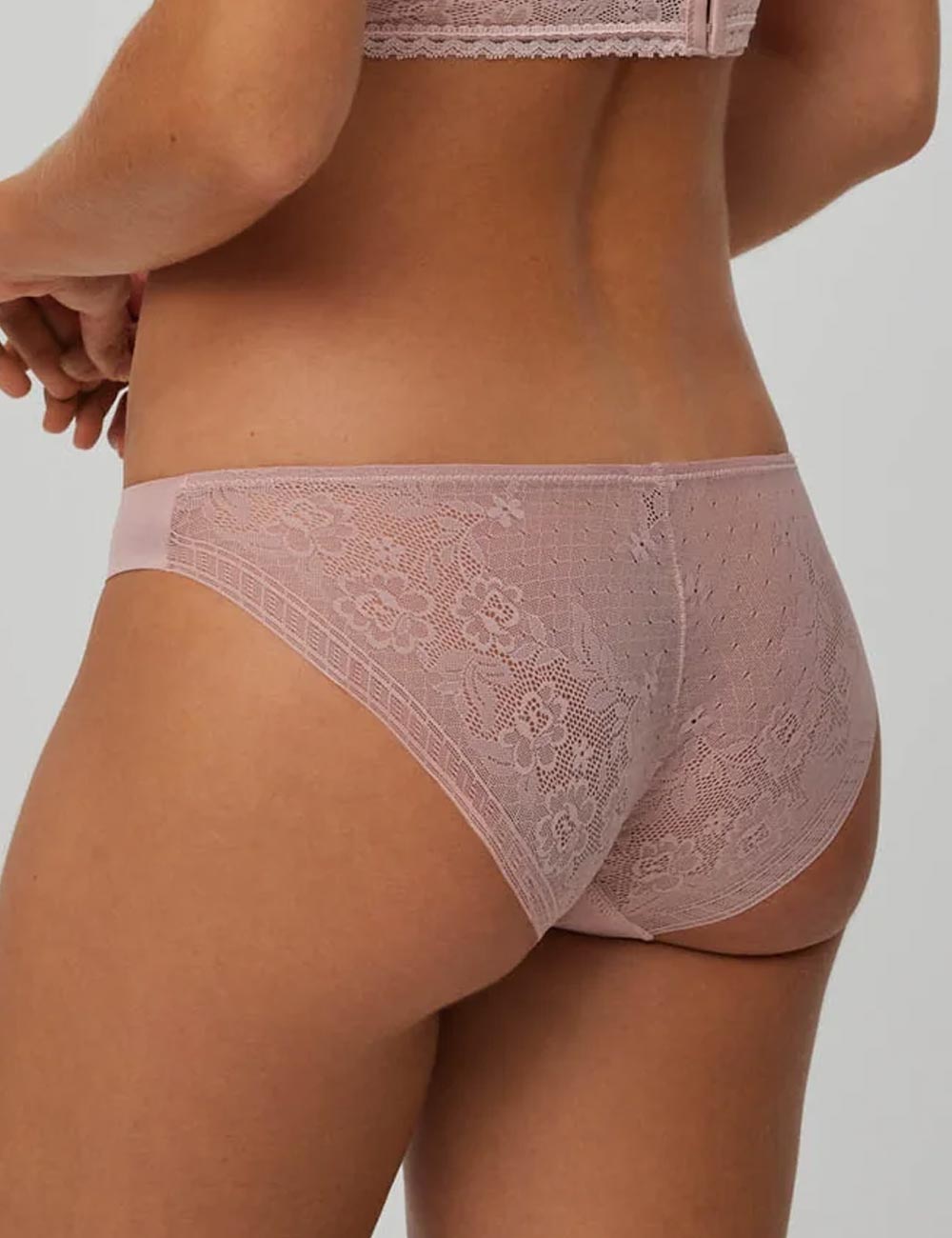 Трусики слип-мини в нежной пудровой расцветке от испанского бренда Ysabel Mora модель 19670 с низкой линией талии и узким боком. Передняя деталь выполнена из гладкого эластичного полотна с микрофиброй, задняя - эластичное кружевное полотно с цветочным узором. Плоские швы. Срезы проймы обработаны по специальной технологии clean cut.