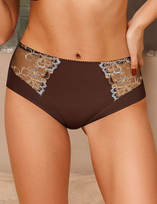 Женские трусы макси Albina L модель EMMA 461 в благородном оттенке шоколада изготовлены из комбинации нежной биколорной вышивки и гладкой микрофибры. Инновационные манжеты по краям ножек гарантируют исключительный комфорт, идеально подходя для женщин с пышными формами в повседневной жизни. Голубые акценты вышивки добавляют изюминку и утонченность.