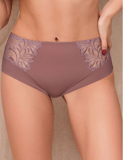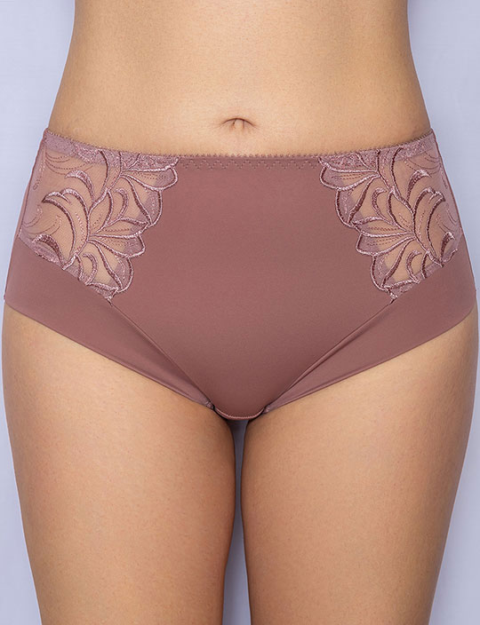Женские трусы Albina L модель NOVELLA 461 в модной кофейно-розовой расцветке. Нежная вышивка сочетается с гладкой микрофиброй, а мягкие манжеты по краям ножек обеспечивают комфорт для чувствительной кожи. Идеальны для женщин с пышными формами.