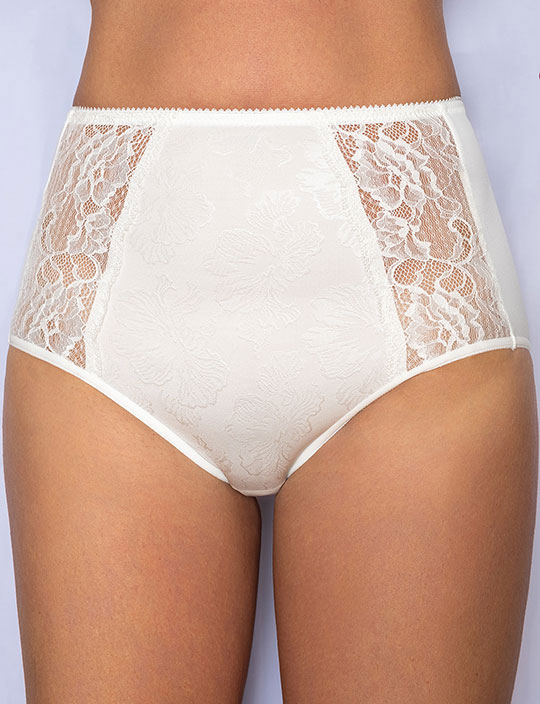 Трусы-слипы COMFORT 475 от Albina L выполнены из набивного фактурного полотна с цветочным орнаментом спереди и однотонной микрофибры сзади — в нежном цвете «молоко». Завышенная линия талии и широкие кружевные вставки обеспечивают комфорт, поддержку и идеальное моделирование фигуры, подчёркивая её изящные контуры.