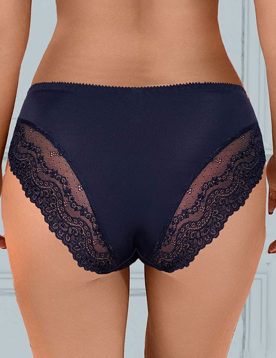Темно-синие женские трусики ETUDE 211 midnight от бренда Albina L - это слипы со средней посадкой, выполненные из эластичной набивной микрофибры в точку и эластичного кружева. Обеспечивают комфорт и свободу движений. Их классическая форма создает изящный силуэт и подходит для любых поводов.