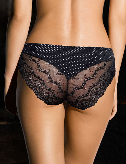 Трусики SCARLETTE 408 от латвийского бренда Albina L сшиты из мягкой принтованной микрофибры и эластичного кружева в черном цвете. Они обеспечивают комфортное покрытие ягодиц без следов на теле. Классический ретро-принт «белый горох» подарит отличное настроение на весь день. Идеальны под облегающую одежду.