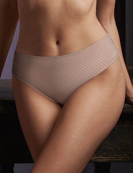 Женские трусы SCARLETTE 408 от Albina L в бежевом оттенке фраппе, с принтом в горошек, выполнены из мягкой микрофибры и эластичного кружева. Модель с полным покрытием ягодиц незаметна под одеждой и не оставляет следов. Эти комфортные слипы подарят вам легкость и уверенность на протяжении всего дня.