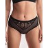 Эстетичные женские трусики темно-синего цвета Alles VOLARE CLASSIC из эластичного ажурного кружева и узорчатой мягкой сеточки, мягко облегают женские бедра, подчеркивая их округлость. Вырез на задней детали и пересекающиеся тонкие эластичные стрэп-ленты наполняют образ сексуальной интригой и дерзостью.