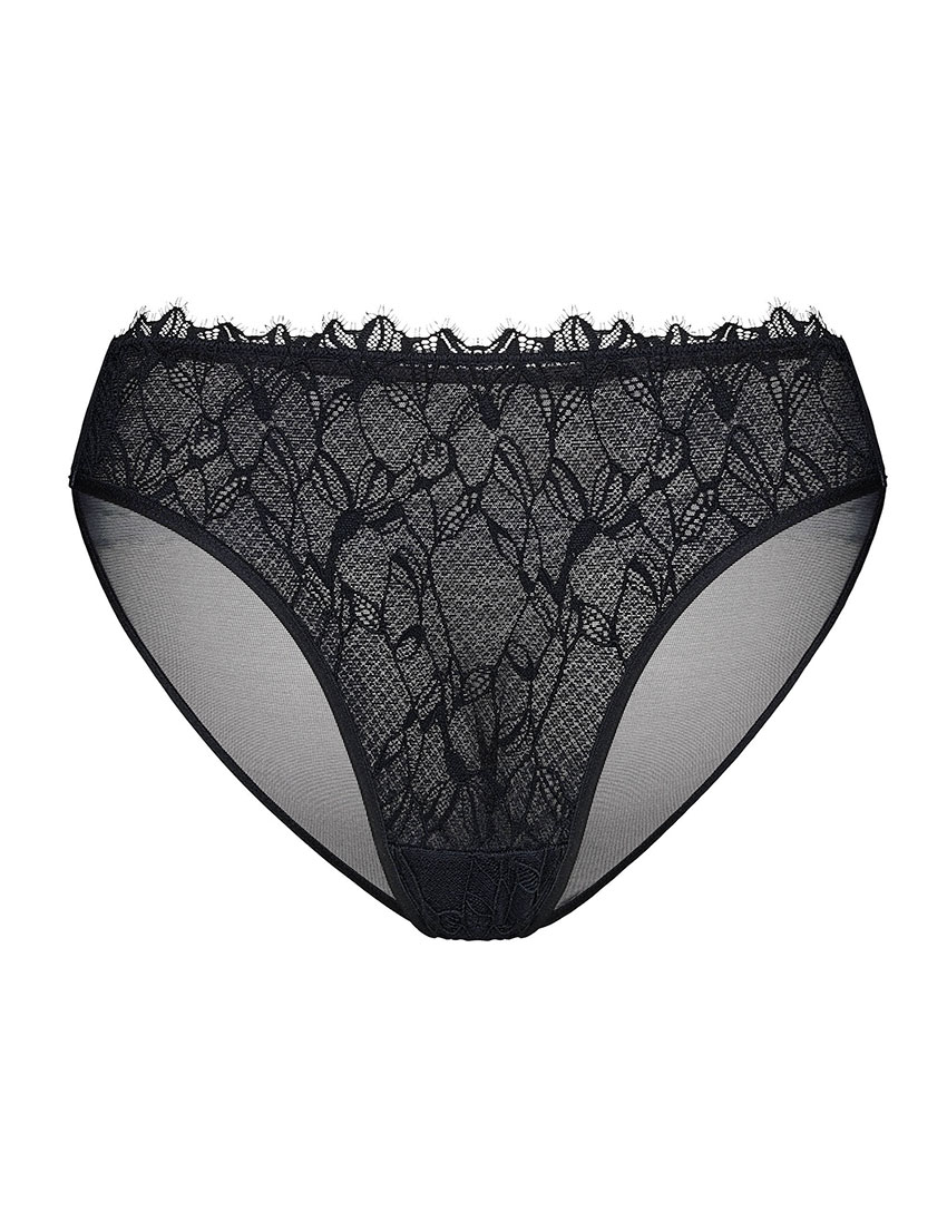 Трусики-слипы Esotiq CMON 44001 нежно облегают талию, подчеркивая её изгиб. Выполнены из ажурного кружева с «ресничками» спереди и прозрачной сетки сзади — черный цвет раскрывает текстуру узора, придавая образу легкий эффект тату. Идеальны для дневной элегантности или вечерней соблазнительности.