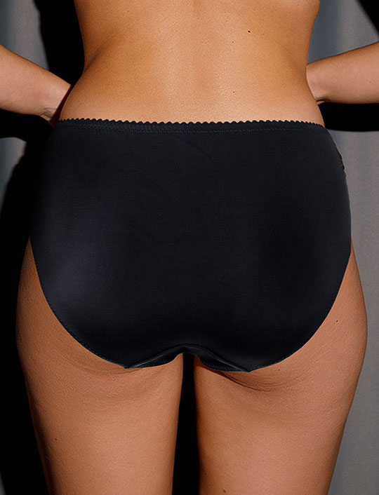 Трусы-слипы миди ГАРМОНИЯ 2065 от Fluide — это не роскошь, а необходимость. Чёрная микрофибра с блеском, средняя линия талии и телесная сетка с чёрной вышивкой создают идеальный баланс между комфортом и элегантным современным образом.