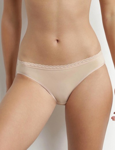 Легкие трусики Dim DAILY MICRO 0DYC практически незаметны под одеждой благодаря плоским краям и нейтральному телесному цвету. Выполнены из эластичной микрофибры, которая дополнена кружевным поясом в горошек, который придает этим трусикам изысканный вид.