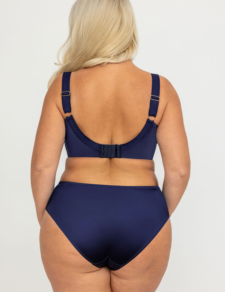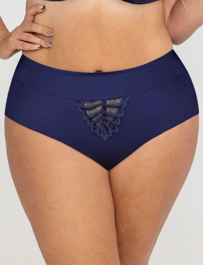 Трусы-слипы Kris Line MOONLIGHT briefs — утонченный акцент элегантности со средней линией талии, идеально облегающие фигуру для комфорта в течение дня. Выполнены из темной синей эластичной микрофибры с легким блеском. Кружевная вставка спереди добавляет соблазнительный штрих, наполняя белье женственностью и шармом.