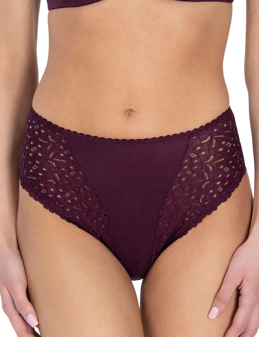 Женские трусы комфорт L01810 из коллекции Lauma COTTON CLASSIC в расцветке красный виноград, с высокой талией. Модель обеспечивает удобную посадку для женщин любого типа фигуры. Изготовлены из мягкого эластичного полотна с большим содержанием хлопка и украшены кружевными вставками. Отличный выбор на каждый день.