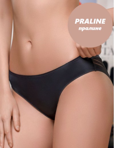 Трусы женские Mioocchi NAOMI модель 8411 — классические слипы в кофейном оттенке praline. Ультрагладкая микрофибра с сатиновым блеском красиво облегает спереди и сзади, дополненная сеточкой с стильным рисунком. Легко и комфортно — идеально для повседневного ношения.