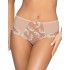 Передняя деталь выполнена из черного эластичного сетчатого полотна со вставкой из нежной эксклюзивной биколорной вышивки; задняя деталь - из гладкого эластичного полотна. Верхний срез обработан тонкой эластичной тесьмой. Срезы пройм отделаны широкой полосой сетки с краевой двухцветной вышивкой. Ластовица из хлопка.