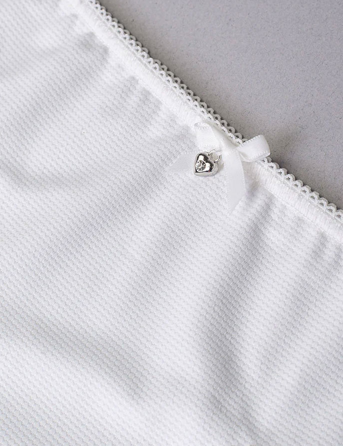 Трусики слипы Sielei DARLING модель 1875 из белой эластичной микрофибры с утончённым вафельным узором. Нежное кружево у ножек и изящный бантик с кулоном в форме сердца придают модели особое очарование. Лёгкие и комфортные — идеальны для каждого дня.