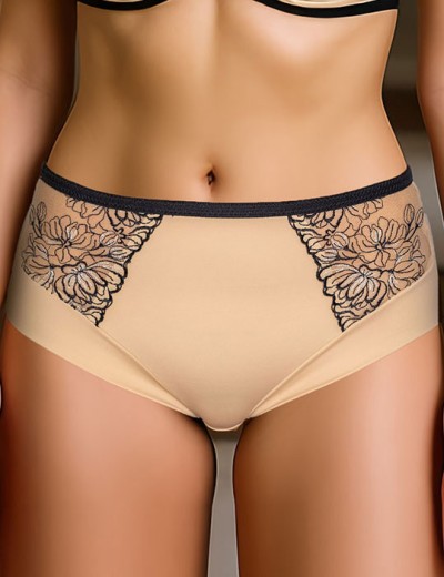 Женские трусы макси Albina L модель JESSICA 461 в элегантной миндальной расцветке: нежная биколорная вышивка сочетается с гладкой микрофиброй. Инновационные манжеты по краям ножек дарят непревзойдённый комфорт весь день — идеально для женщин с роскошными пышными формами.