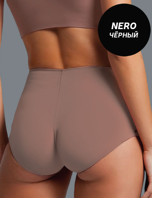 Черные трусы-слипы Lormar TOUCH с высокой линией талии выполнены из ультрамягкой микрофибры. Дублированная передняя панель обеспечивает деликатную поддержку в области живота, а лазерная обработка краев и гладкий силуэт делают модель невидимой под одеждой. Такая конструкция гарантирует полную свободу движений и безупречный комфорт в течение всего дня.