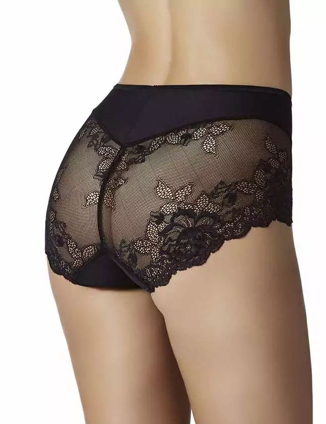 Элегантные трусы Janira GRETA модель 1031447 Carey в чёрном цвете сочетают высокую линию талии и широкий бок для идеальной посадки. Изготовлены из эластичной микрофибры с мягким кружевом и бесшовным фигурным краем сзади. Передняя часть с легким эффектом утяжки создает плоский животик, а задняя деталь специальным кроем мягко обхватывает и приподнимает ягодицы, образуя эффект "танга" для уверенного силуэта.