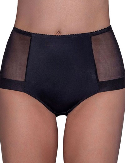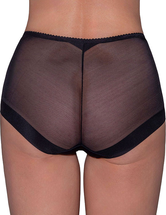 Высокие трусы модель 2010 из коллекции Fluide BASIC выполнены из мягкой микрофибры черного цвета. Задняя часть и бока украшены плоским мерцающим кружевом, передняя — дублирована сеткой для дополнительной поддержки живота. Обеспечивают комфорт и идеальную посадку, оставаясь незаметными под одеждой.