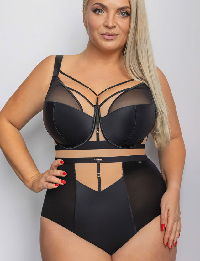 Трусики SIMPLE MAXI от Kris Line — утончённый комфорт с высокой талией, мягко облегающие живот и ягодицы, визуально подчеркивающие изгибы фигуры. Прозрачная бежевая сетка спереди нежно переливается на фоне гладкой чёрной микрофибры, добавляя изысканную глубину. Идеальны для повседневного ношения и создания чувственных образов.