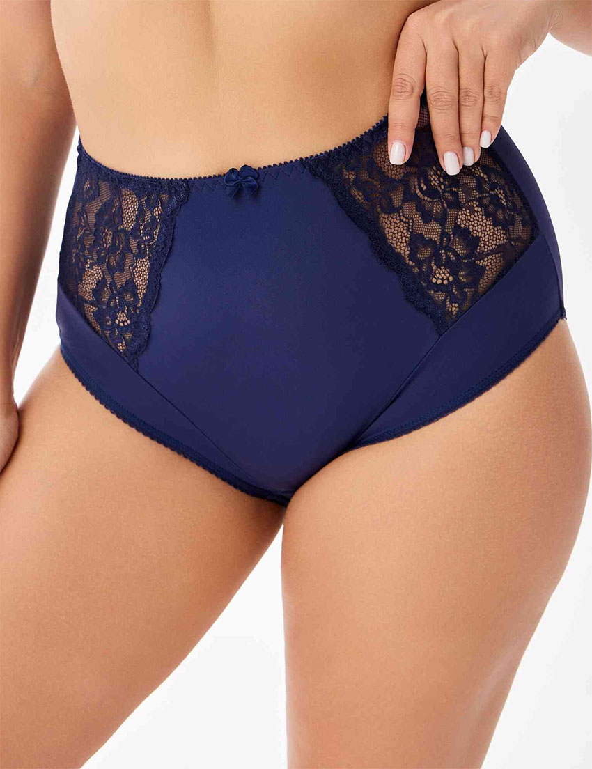Темно-синие трусы женские Elli 621 – мягкая микрофибра с кружевными вставками, высокая линия талии и широкие боковые панели создают комфорт и легкий моделирующий эффект. Эластичное полотно обеспечивает идеальную посадку, а классический дизайн делает их идеальным выбором для повседневной носки.