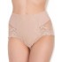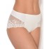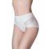 Выполнены из гладкого эластичного ультра мягкого полотна с микрофиброй и эластичного кружевного полотна с цветочным узором. Передняя деталь продублирована полотном с легким эффектом утяжки. Плоские швы, удобная анатомическая форма. Задняя деталь за счет специального кроя, мягко обхватывает и приподнимает ягодицы, образуя эффект «танга». Верхний срез обработан плоской тесьмой. Срезы проймы кружевные. Хлопковая гигиеничная ластовица из мягкой махровой ткани.