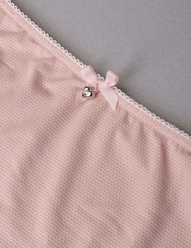 Женские трусы Sielei DARLING 1879 из мягкой рельефной микрофибры с вафельным узором, в пудровом оттенке бежевого. Нежная полоска кружева на ножках спинки и бантик с кулоном в форме сердца придают утонченность. Лёгкие и удобные — прекрасный выбор на каждый день.