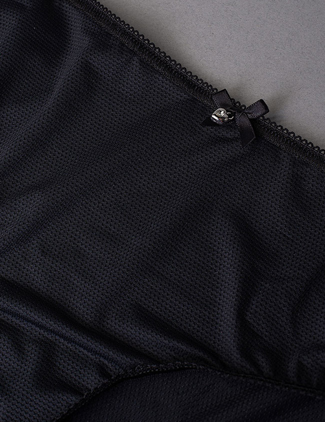 Женские трусы Sielei DARLING 1879 из мягкой рельефной микрофибры с вафельным узором, в черном цвете. Нежная полоска кружева на ножках спинки и бантик с кулоном в форме сердца придают утонченность. Лёгкие и удобные — прекрасный выбор на каждый день.