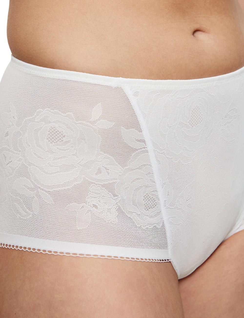 Женские трусы WILD ROSE SENSATION maxi бренда Triumph в оттенке «белый шёлк» выполнены из изысканного плоского кружева с изящным цветочным орнаментом. Моделирующая вставка в области живота обеспечивает лёгкую степень утяжки.