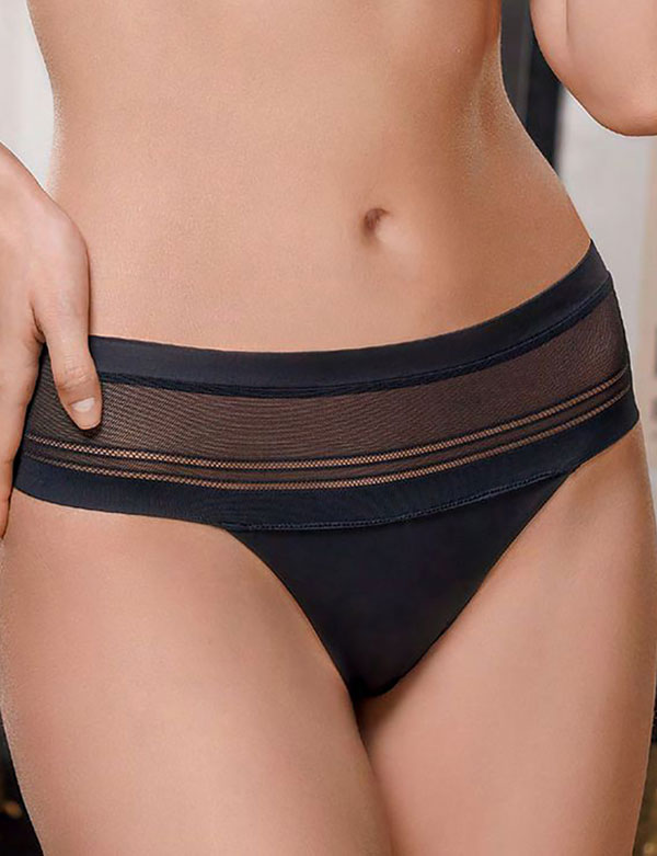 Трусики-стринги Mioocchi 8413 из коллекции NAOMI — настоящий хит! В чёрном цвете, с завышенной линией талии, они облегают фигуру с элегантной смелостью. Выполнены из ультрагладкой микрофибры с благородным блеском и сетки, облегающей бёдра, с лаконичным узором вдоль плоского края. Комфортно и стильно — идеально для романтических вечеров или повседневных выходов.