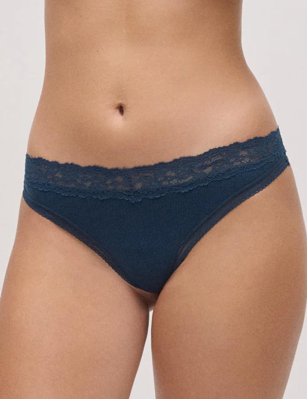 Стринги в рубчик с кружевом Ysabel Mora 10763 тёмно-синий