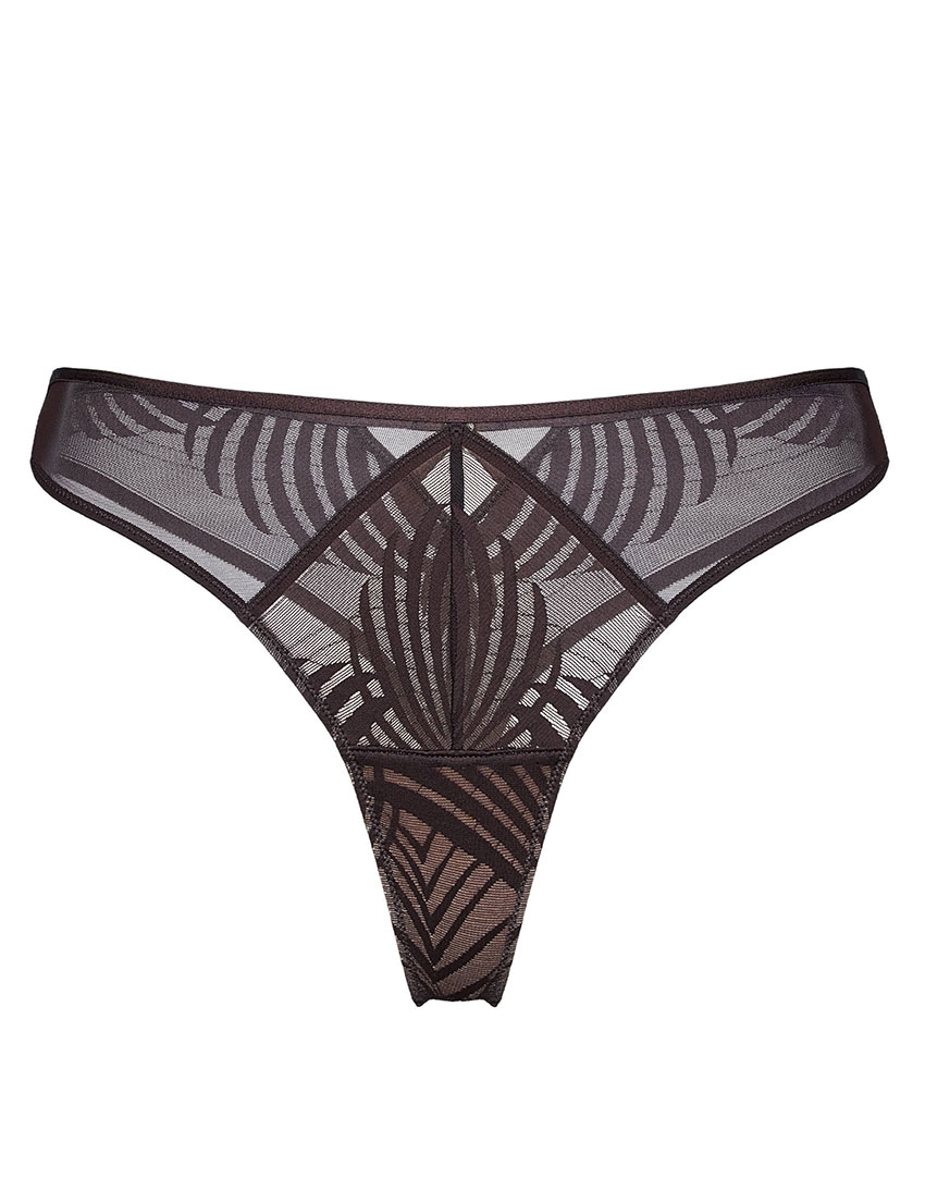 Изящные женские стринги Esotiq NACRE 43523, открывающее ягодицы – предложение для всех поклонниц белья из мягкой и нежной, слегка прозрачной узорчатой сеточки шоколадного цвета. Сочетают современный графический узор и отделку гладкими лентами. Особый шик - фантазийный вырез с перекрещивающимися резинками и золотистым декоративным элементом над ягодицами.