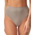 Трусы стринги высокой посадки от сербского бренда MY модель PE055 выполнены из мягкой фактурной микрофибры в рубчик по бесшовной технологии, бежевого цвета.