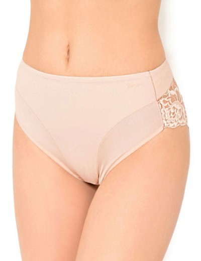 Трусы высокие Janira 1031868 Vientre Plano Shape из коллекции GRETA — идеальное сочетание коррекции и элегантности песочного цвета. Средняя степень утяжки в области живота и нижней части спины обеспечивает комфортную поддержку и моделирование силуэта. Спереди выполнены из плотной двойной микрофибры, а сзади и по линии открытия ноги — из цветочного кружева.
