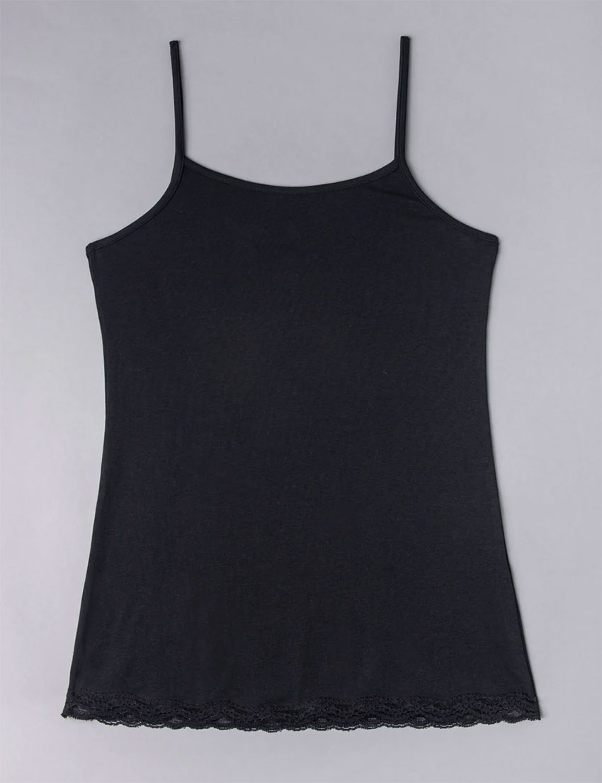 Чёрная женская майка на тонких бретельках Sielei модель NATURAL COTTON 1432, декорирована кружевом по подолу. Выполнена из мягкого и эластичного органического хлопка, собранного вручную, что обеспечивает высокое качество и комфорт. Может использоваться не только как нижнее белье, но и как верхний трикотаж, с джинсами и спортивными брюками.