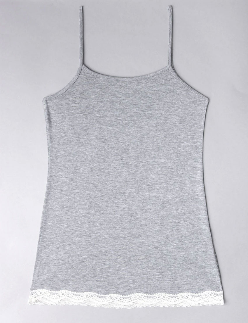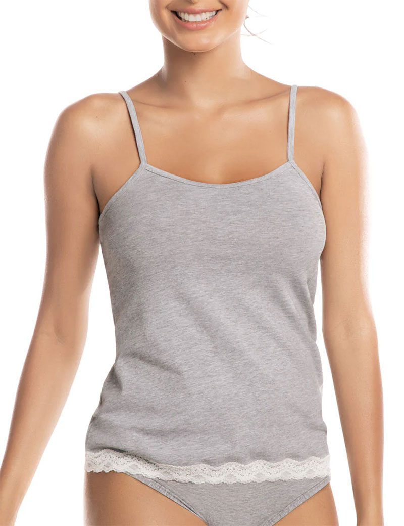 Серая женская майка на тонких бретельках Sielei модель NATURAL COTTON 1432, декорирована кружевом по подолу. Выполнена из мягкого и эластичного органического меланжевого хлопка, собранного вручную, что обеспечивает высокое качество и комфорт. Может использоваться не только как нижнее белье, но и как верхний трикотаж, с джинсами и спортивными брюками.